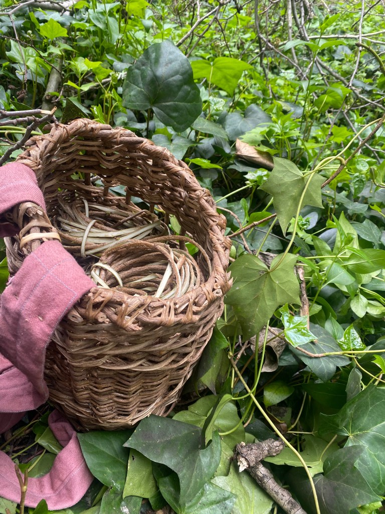 We harvest the overabundant non-native plant English Ivy that grows ubiquitously along the Sausal Creek Watershed in Oakland, CA to create Baskets, paper and other objects, art material, tools and medicine.
